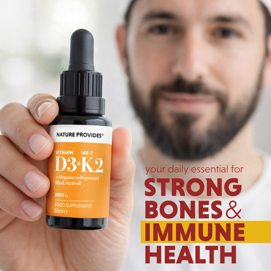 • D3+K2 (3000IU) Liquid Vitamin D3 & K2 (MK7) in Organic BlackSeed Oil - 30ml - Nature Provides